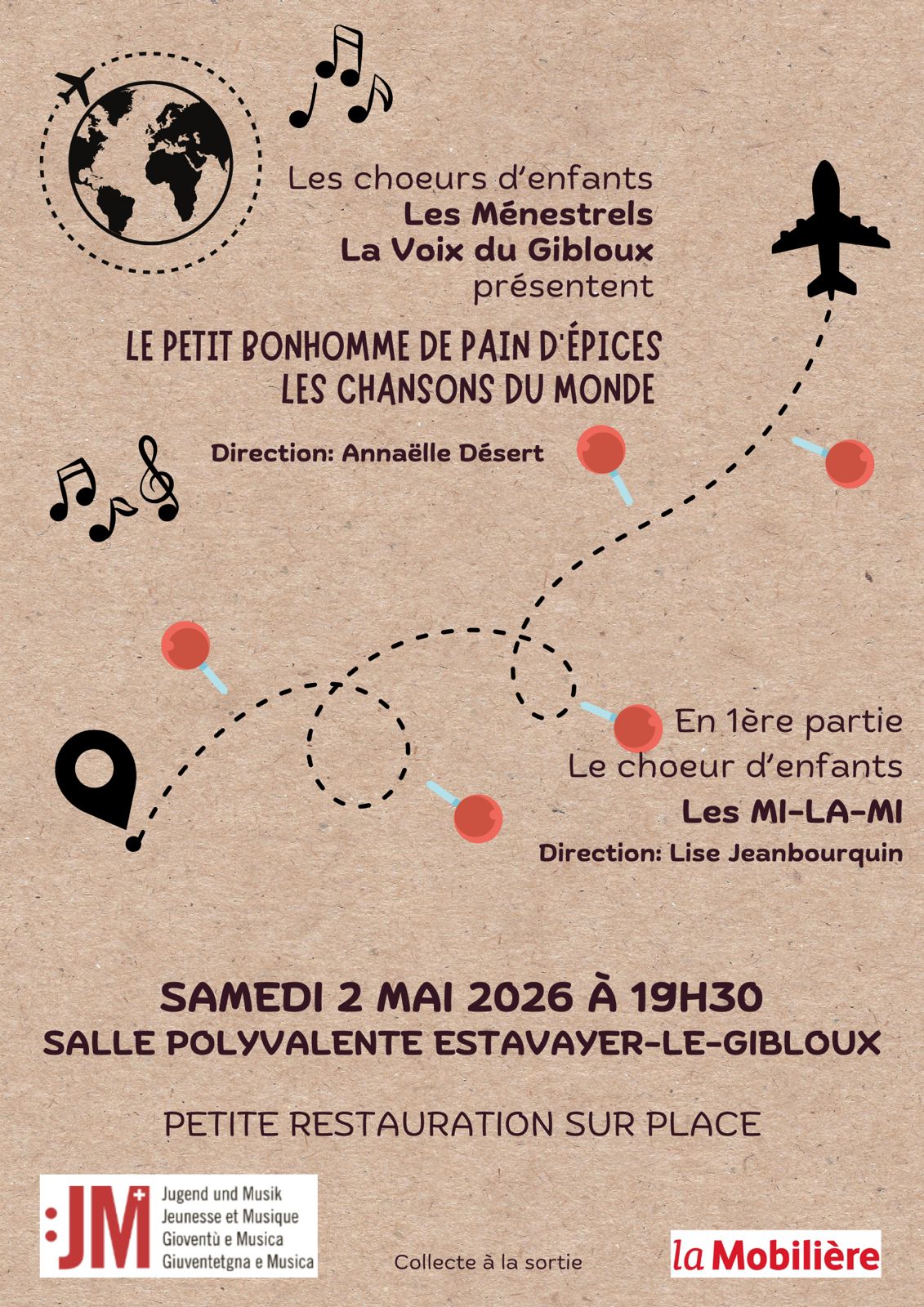 Le choeur d'enfants La Voix du Gibloux vous égaiera de ses plus jolies mélodies lors de prestations diverses. Plus de 80 frimousses vous attendent et se réjouissent de vous rencontrer lors de leur concert-spectacle annuel pour découvrir de nouveaux chants et une histoire inédite !!!